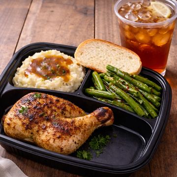 Chicken,Mashed Potatoes,Green Beans, Bread & Drink